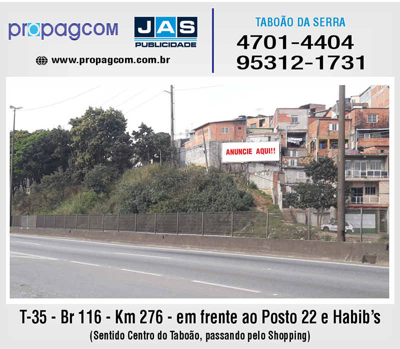 Cidade:Taboão da Serra Código:T35 Local:Br 114 - Km 276 - em frente ao Posto 22 e Habib’s - SentidoCentro do Taboão, passando pelo Shopping Atualizado em: - 26/11/2025 07:56:55