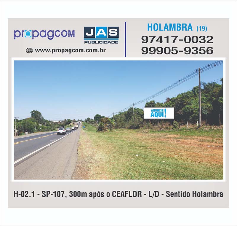 Cidade:Holambra Código:H02-1 Local:SP-107, 300m após CEAFLOR - L/D - Sentido Holambra Atualizado em: 11/01/2023 - 31/01/2026 15:26:22