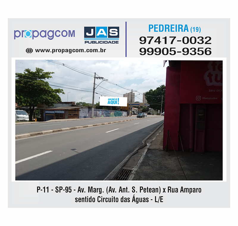 Cidade:Pedreira Código:P11 Local:Av. Marg. (Av. Ant. S. Petean) x Rua Amparo sentido Circuito das Águas - L/E Atualizado em: 10/01/2023 - 12/01/2026 11:10:57
