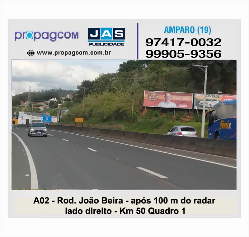 Cidade:Amparo Código:A02 Local:Rod. João Beira - após 100 m do radar - lado direito - Km 50 Quadro 1 Atualizado em: 11/12/2025 - 31/03/2026 10:45:45