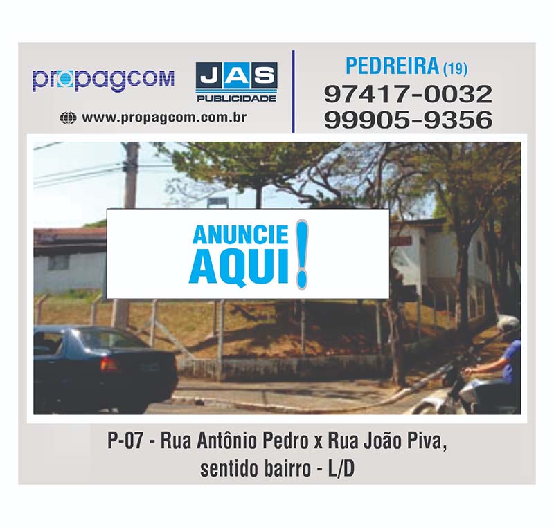 Cidade:Pedreira Código:P07 Local:Antonio Pedro x Rua João Piva - sentido Bairro - L/D Atualizado em: 11/01/2023 - 27/01/2026 16:40:45