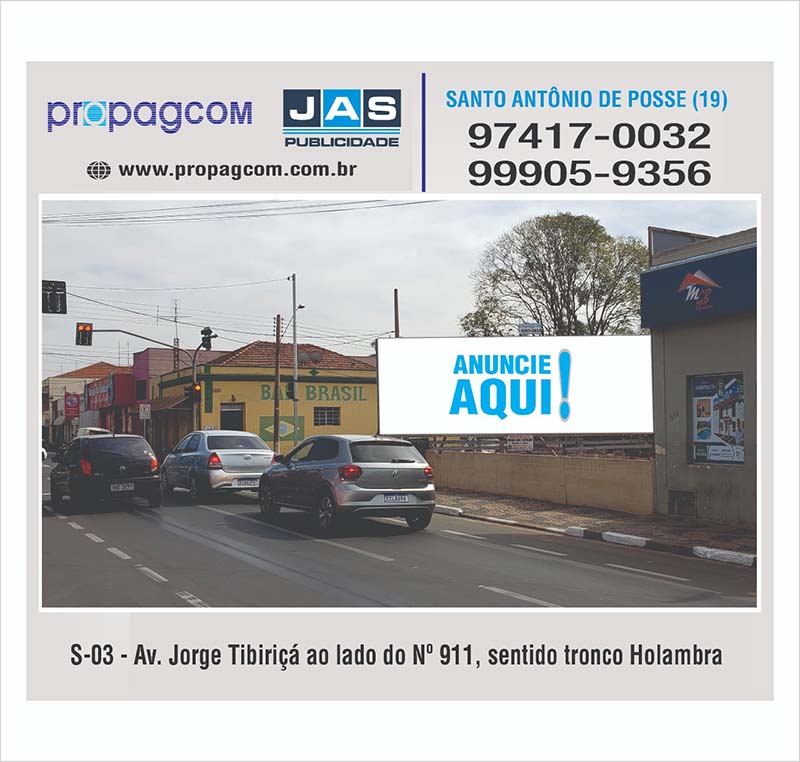 Cidade:Santo Antonio de Posse Código:S03 Local:Av. Jorge Tibiriçá ao lado do nº 911 – sentido tronco Holambra Atualizado em: 10/01/2023 - 17/02/2026 11:00:11