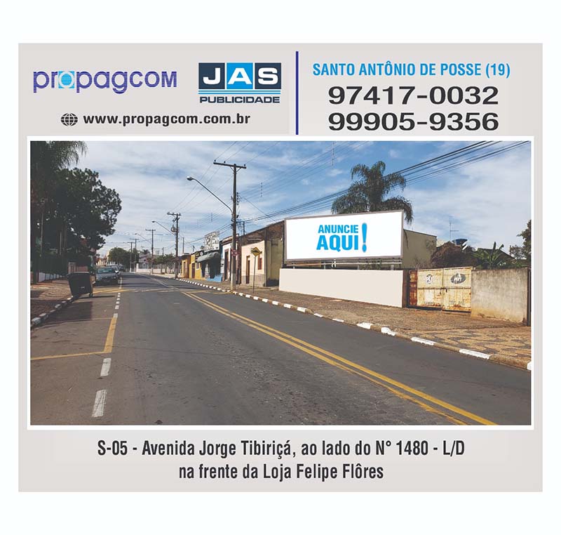 Cidade:Santo Antonio de Posse Código:S05 Local:Avenida Jorge Tibiriçá, ao lado do n° 1480 L/D - na frente da loja Felipe Flores Atualizado em: 10/01/2023 - 27/01/2026 16:39:58